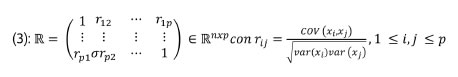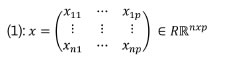 Se parte de p variables, muestreadas sobre n (unidades de análisis) casos: x11,…,xp1,…,x1n,… xpn. Su expresión matricial es: