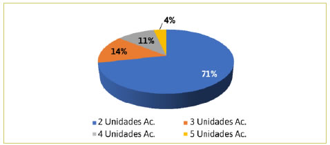 Para analizar el grado de integración disciplinar en los pio en cada una de las dos convocatorias se empleó el dato de la cantidad de unidades académicas intervinientes en cada proyecto. En primer lugar, se agruparon las unidades académicas en cuatro ramas8: Ciencias Aplicadas (facultades de Agronomía e Ingeniería), Ciencias Básicas (Facultad de Exactas), Ciencias de la Salud (facultades de Salud y de Veterinaria) y Ciencias Sociales y Humanidades (Facultad de Ciencias Sociales, de Derecho, de Ciencias Económicas, de Ciencias Humanas y de Arte).