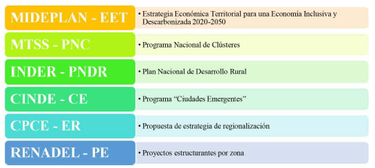 Ello ha llevado a una proliferación de instancias de gobernanza regional, con distintos alcances y competencias. En algunos casos, el mandato de estas instancias está limitado a su accionar dentro de la estructura de la institución a la que pertenecen. A pesar de esto, se han establecido iniciativas de gobernanza regional que están expresamente orientadas a promover la coordinación interinstitucional, como los Consejos de Desarrollo Territorial del Instituto de Desarrollo Agrario en el inder, creado por la Ley 9.036, y las recientes Agencias Regionales de Desarrollo (aredes) bajo la ley 10.096 de 2022.