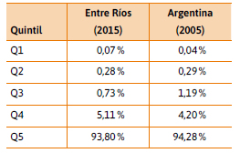 La desigual distribución del ingreso del movimiento cooperativo por entidad individual es similar al observado en la Argentina, como muestra el siguiente cuadro (Tabla 2), con diferencias más marcadas en el quintil 1 y 3.