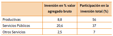 En relación a la inversión productiva (equipo de capital y construcción), las cooperativas destinaron en 2015 la suma de $ 202.788.453. El 56 % de la inversión corresponde a las cooperativas productivas, el 37 % a las de servicios públicos y el 7 % al resto. Se trata de un nivel de inversión que, en promedio, representa el 9,2 % del valor agregado generado por el movimiento cooperativo (respecto del concepto de valor agregado, véase el apartado: Una aproximación al valor agregado, más adelante en el presente trabajo). No es una cifra despreciable, aunque el porcentaje sobre el valor agregado es relativamente bajo. Si consideramos las cooperativas por tamaño, aquellas que integran el quintil de mayores ingresos, la inversión respecto del valor agregado sube al 11 %. La mayor tasa de inversión se produjo en las cooperativas de servicios públicos, con un coeficiente del 20,6 %, lo cual probablemente se relacione, en el caso de las eléctricas, con el congelamiento de tarifas y el financiamiento público de la inversión, dado el Programa de Convergencia y Reestructuración Tarifaria de la Nación, que otorgó recursos para tal fin.