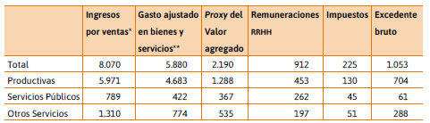 Uno de los indicadores más importantes del impacto económico de un sector, actividad o complejo productivo es el valor agregado. Se trata de la riqueza efectivamente generada en un período de tiempo determinado. Conceptualmente el valor agregado puede verse de diversas maneras: como la suma del valor de los bienes y servicios finales producidos en el ámbito analizado; la suma del valor agregado por cada sector individual en dicho ámbito; la suma de la remuneración a los factores que contribuyeron a obtener el referido producto o la suma del uso que se hace con los ingresos así generados. Justamente, el valor agregado expresa la capacidad de un determinado complejo productivo para generar ciertas condiciones de crecimiento económicamente sustentables, en la medida que constituye el ingreso que sostiene a los trabajadores, al estado y a las distintas fracciones del capital (empresarios productivos, financieros y rentistas).