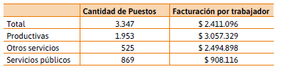 El nhce genera empleo directo remunerado (asalariado dependiente) por un total de 3.347 puestos de trabajo. Se trata de una cifra muy importante, nada menos que el 2,1 % del total de trabajadores registrados por el sector privado en Entre Ríos durante el año de referencia (2015). Para tener un parámetro de comparación, a nivel nacional, según el relevamiento del inaes 2008, los puestos de trabajo directos del movimiento cooperativo representaban el 1,5 % del total del empleo privado registrado de la Argentina, es decir, un 28 % menos que en Entre Ríos. Del total de puestos de trabajo, nuevamente las cooperativas productivas son las de mayor peso, con el 58 %, le siguen las cooperativas de servicios públicos (26 %) y luego las de otros servicios (16 %) (Tabla 9). Ello es lógico en la medida que las cooperativas de servicios públicos o de otros servicios, tienen mayores requerimientos de trabajo por cada millón de pesos del valor de la producción, en razón de la naturaleza de la actividad.