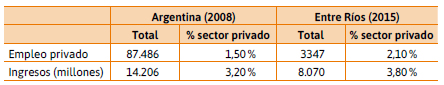 Es interesante notar que las cooperativas de servicios públicos ocupaban en 2003 un total de 622 trabajadores asalariados (Censo Económico 2004/05), mientras que en 2015 la cifra alcanzó los 869 puestos, un 39,7 % de crecimiento (la metodología del Censo económico 2004/05, está publicada en la página web del citado organismo). Si a ello le sumamos el aumento salarial, tenemos la explicación del enorme peso que han adquirido las remuneraciones en esas empresas de servicios públicos, complementado además por el congelamiento tarifario de 2015 para las cooperativas de electricidad. De todos modos, el porcentaje de crecimiento del empleo en este sector cooperativo pareciera estar muy por debajo del promedio de expansión de los puestos de trabajo privado registrado en el mismo lapso, e incluso es menor que la evolución del empleo privado registrado en la rama electricidad, gas y agua, cuyo incremento fue del 56 % entre 2003 y 2015 para Entre Ríos (datos del Observatorio del Empleo y la Dinámica Empresarial del ex Ministerio de Trabajo, Empleo y Seguridad Social de la Nación).