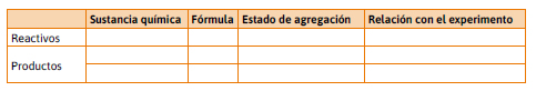 Asocia cada uno de los reactivos/productos con lo observado en la experiencia completando el siguiente cuadro: