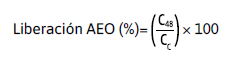 El porcentaje de liberación del aceite esencial de orégano se calculó a partir de la concentración de polifenoles cuantificada por la técnica de Folin-Ciocalteu, descrita previamente en las cápsulas, usando la ecuación: