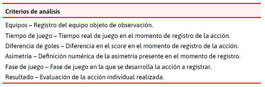 La primera etapa dentro de la validación de un nuevo instrumento observacional ad hoc es un relevamiento minucioso de la bibliografía existente sobre el fenómeno a estudiar, para así poder conformar una primera lista de criterios y posibles categorías acorde al marco teórico. Como ejemplo, en el estudio sobre la eficacia ofensiva en las desigualdades en el handball femenino realizado por Trejo y Planas (2018) se conformó la lista abierta de categorías que fueron agrupadas según una primera serie de criterios (Tablas 2 y 3).