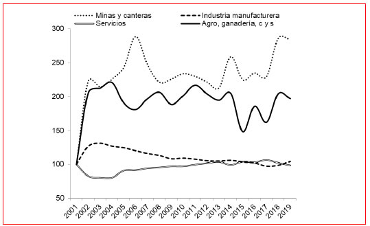 El comportamiento del sector cobró una centralidad renovada en el debate económico en los años 2000, gracias a un ciclo excepcional de incremento de los precios internacionales de los principales commodities agrícolas en los mercados extranjeros. Ese proceso se combinó con una «revolución tecnológica» que data de mediados de los años 90, cuando se incrementó el uso de paquetes genéticamente modificados de semillas y nuevos fertilizantes, herbicidas y técnicas de producción (tanto en agricultura como en ganadería). En ese contexto, el país anotó significativos incrementos en las exportaciones agropecuarias en la primera década del siglo xxi, que pasaron luego a estancarse desde 2012, cuando arreció nuevamente el problema de la restricción externa al crecimiento (es decir, la escasez de divisas necesarias para sostener los niveles de producción y empleo) (Wainer, 2018). El período coincidió con la creciente intensificación de la disputa entre vastos sectores propietarios y empresariales del sector contra las políticas intervencionistas del gobierno nacional (Cantamutto y López, 2018). Más adelante, la gestión económica desarrollada durante la presidencia de Mauricio Macri (2015-2019) se propuso implementar una serie de cambios normativos y regulatorios sobre el sector, con el propósito de relanzar la producción, inversiones y exportaciones.