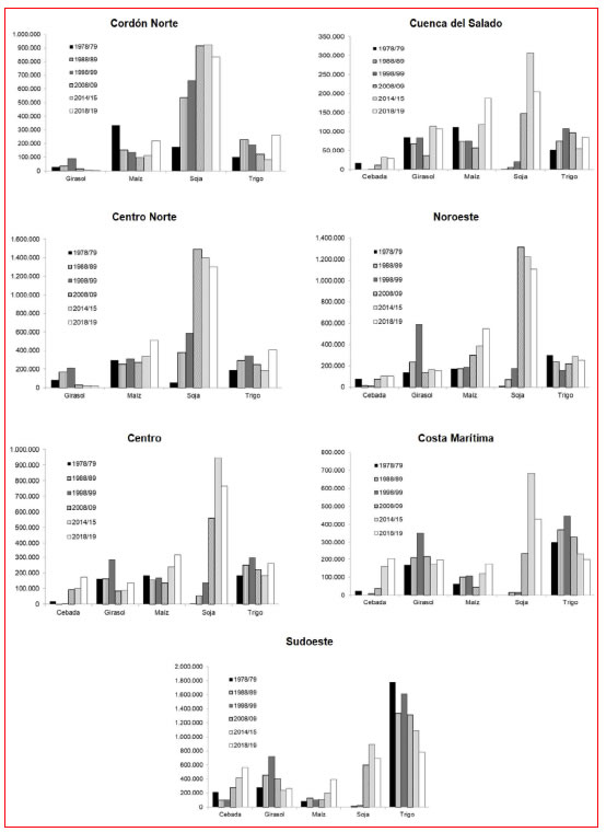 Las medidas implementadas en el período 2015-2019 tuvieron un impacto positivo en la recuperación de la presencia de maíz, trigo, girasol y cebada. Mientras 182.000 hectáreas fueron «liberadas por soja» entre las campañas 2014/15 y 2018/19, las mismas fueron ocupadas por estos tres cultivos, en el orden de las 70.000 cada una. De esta manera, una zona eminentemente ganadera y con presencia de trigo, maíz y girasol pasó a ser un núcleo sojero, con mayor diversificación reciente hacia otros de los cultivos principales, redefiniendo sus características históricas.