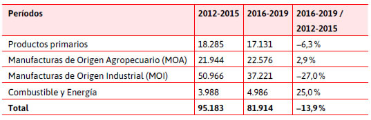 Un examen más detenido y con foco en la provincia de Buenos Aires muestra que en los cuatro años que van de 2016 a 2019 las exportaciones provinciales acumularon un 13,9 % menos de divisas que en el cuatrienio anterior. La caída más relevante se produjo en manufacturas de origen industrial, en tanto que los productos primarios también aportaron menos divisas (−6,3 %). Levemente mayores fueron las exportaciones de MOA, que aumentaron un 2,9 % y más significativas las de combustibles y energía (25 %). Estos resultados indican entonces que las políticas de apertura, liberalización, desregulación y quita de retenciones no habrían dado las respuestas esperadas para apalancar el comercio y las divisas.