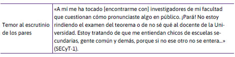 La sensación de no saber cómo hacerlo es una de las limitaciones que, en general, exponen las comunidades científicas al momento de justificar su poco interés o participación en las acciones de cpc. Sin embargo, aunque los entrevistados advierten esa falencia, no se retraen: «Yo nunca voy a decir que no puedo, yo también estoy para esto», pues lo consideran una obligación: